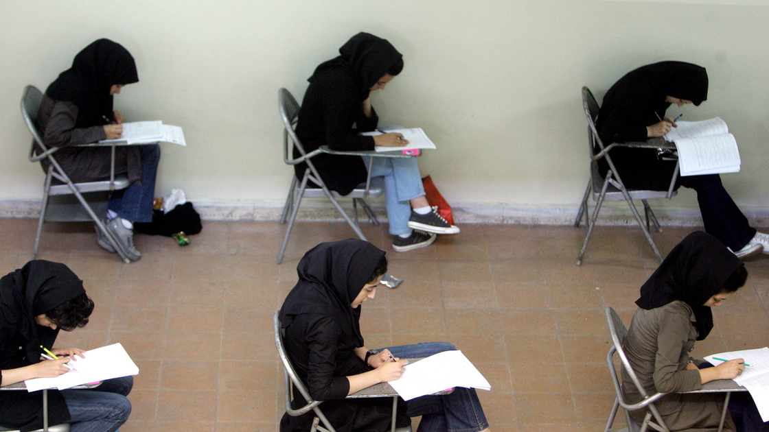 Iranian high school students sit for their university entrance examination in Tehran in 2009. Iran’s economy has been struggling in recent years, and many graduates feel they have few career options.